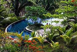 Environmentally friendly saltwater pool located near the Main Building has surrounding views of the mountains and the jungle.